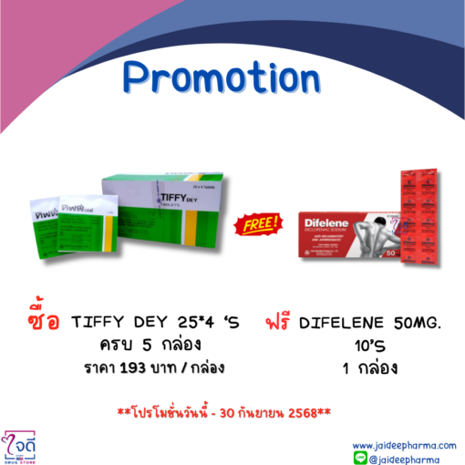 ฟรี DIFELENE 50MG. 10’S ซื้อ TIFFY DEY 25*4‘S ครบ 5 กล่อง
