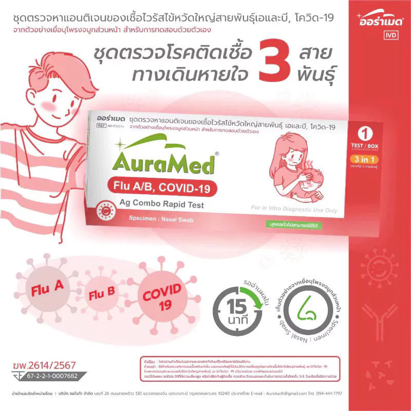 AURAMED FLU A/B, COVID-19 AG COMBO RAPID TEST 3IN1 กล่องสีขาว-แดง