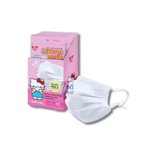 SOS PLUS หน้ากากอนามัยทางการแพทย์ ลายคิตตี้ 12 ซอง (KTMASK02) 17.5×9.5 cm. สีขาว