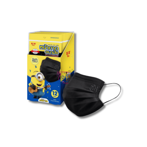 SOS PLUS หน้ากากอนามัยทางการแพทย์ ลายมินเนี่ยน 12 ซอง (MNMASK02) 17.5×9.5 cm. สีดำ