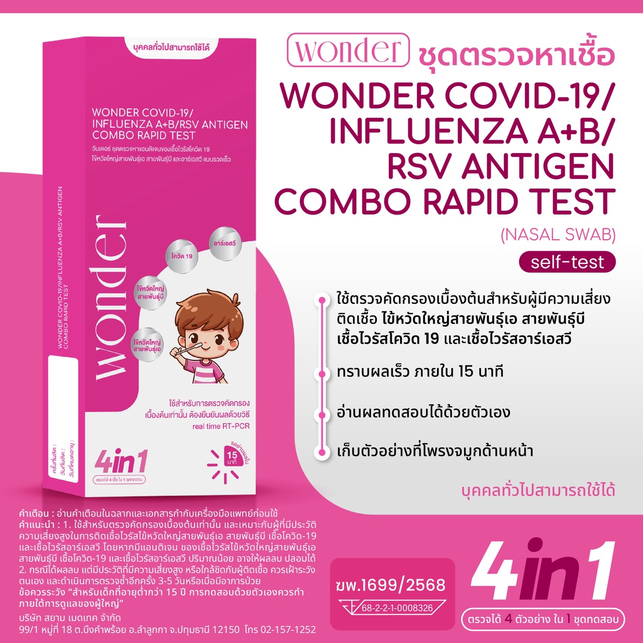 WONDER 4in1 FLU A+B / COVID / RSV NASAL SWAB (กล่องสีชมพู)